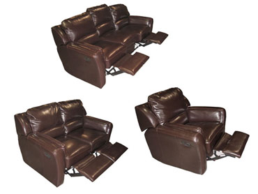 Chocolate Reclining Leather Sofa, Loveseat, and Rocker Chair